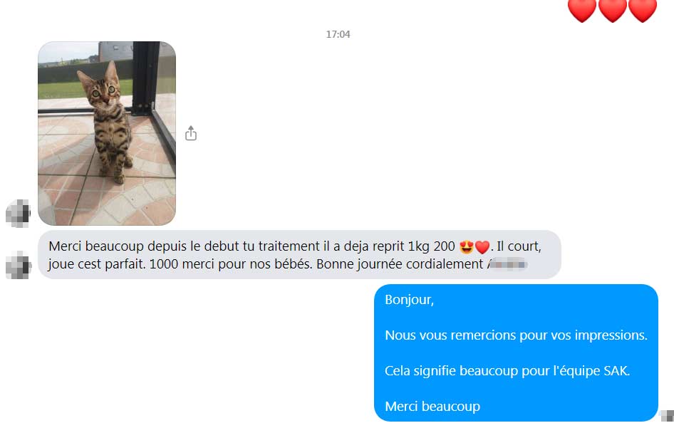 “Merci beaucoup depuis le debut tu traitement il a deja reprit 1kg 200.